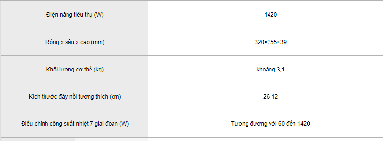 Bảng Điều khiển cho phép điều chỉnh tốt công suất nhiệt trong 7 mức độ từ nhỏ tới lớn nhỏ nhất 60w . Nó cũng thuận tiện cho việc nấu ăn với nhiệt độ thấp, ninh hay kho các món ăn, không tốn điện mà đồ ăn chín từ từ mềm nhừ hơn.