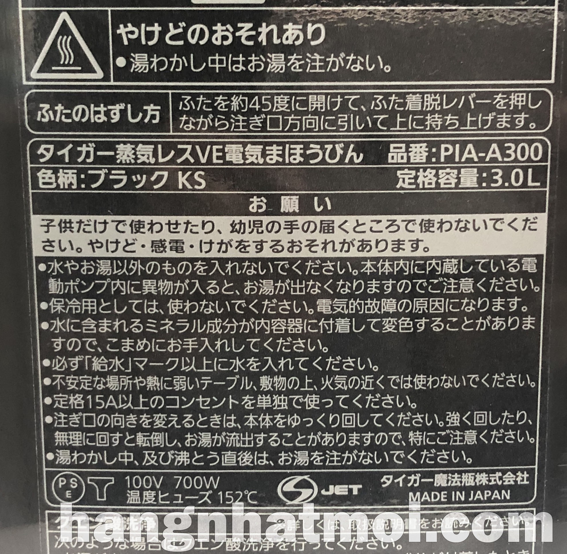 Một vài thông tin về Bình thủy điện tiết kiệm điện Tiger PIA-A300 3 Lít Mới 95%