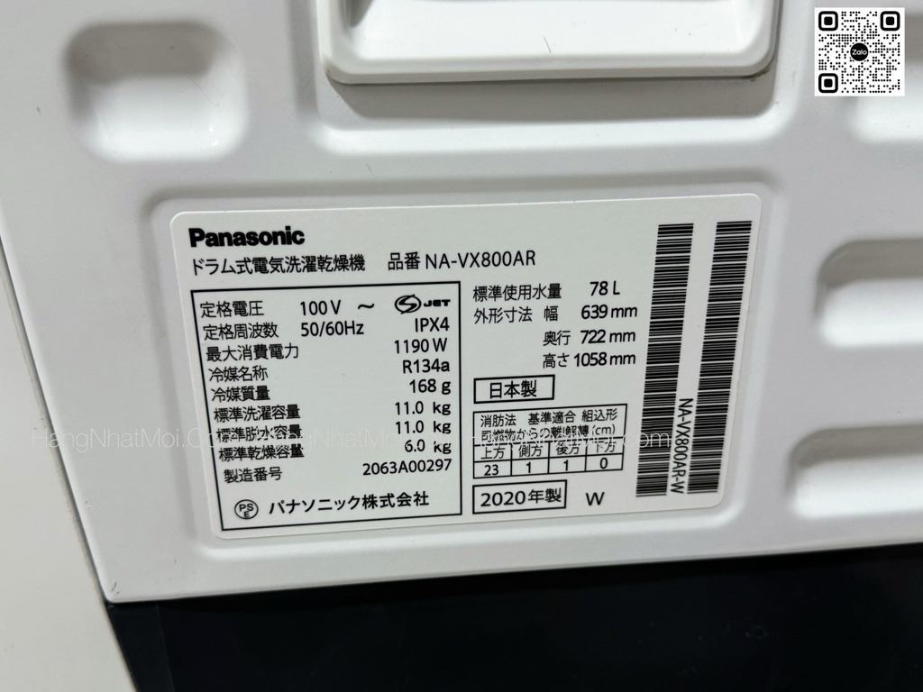 Thông tin từ nhà sản xuất: panasonic.jp/wash/p-db/NA-VX800RA_spec.html