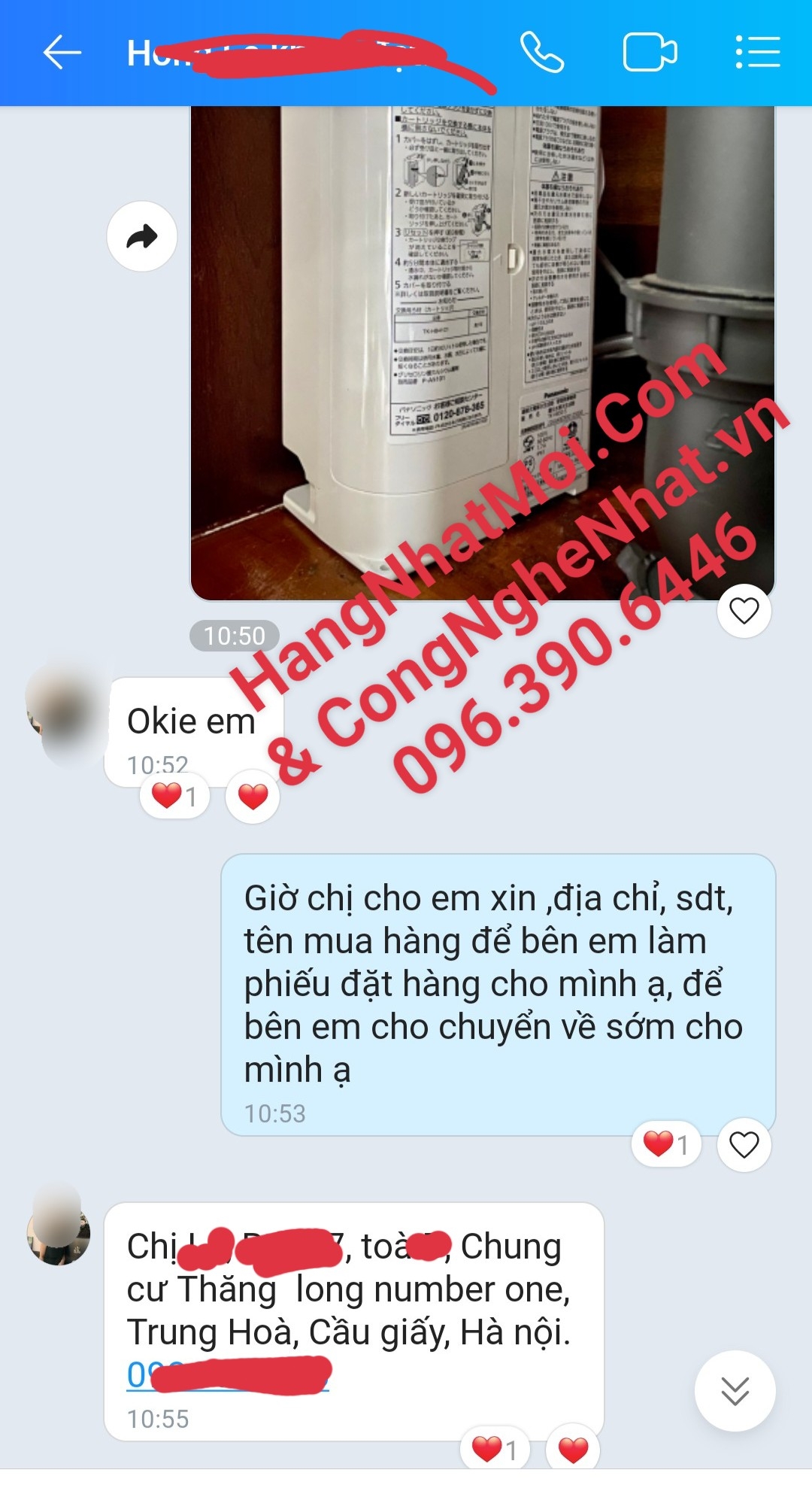 Bước 2 : Shop sẽ chốt lại đơn, xin thông tin địa chỉ để làm phiếu Order ,Đặt hàng cho quý khách,