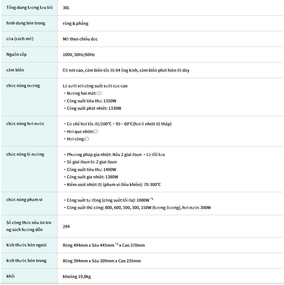 Thực đơn nấu nướng của Lò vi sóng Panasonic NE-BS9A Chính hãng nội địa Nhật