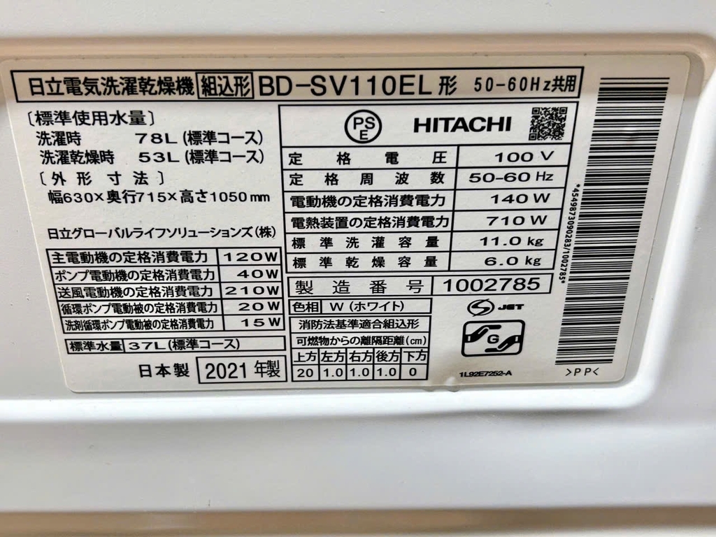 | Máy Giặt Hitachi BD-SV110EL dòng VIP 2021, Giặt 11KG sấy 6Kg nội địa Nhật 96% Made in Japan |
