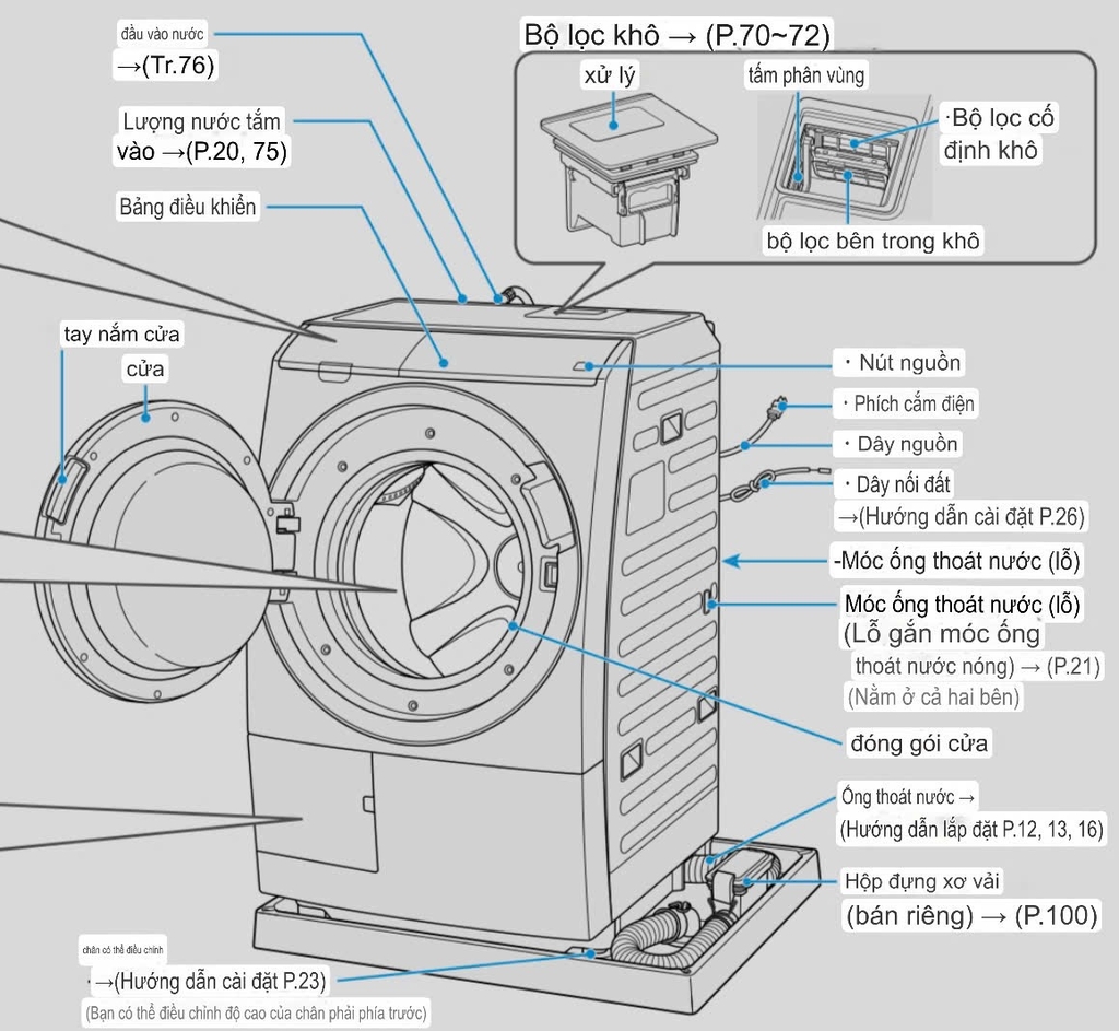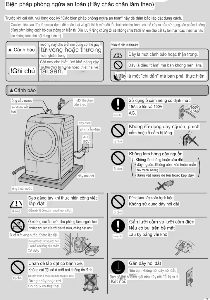 - Dòng điện: 100V - Giặt khoảng : 190 W - Giặt - Sấy : khoảng 775W |