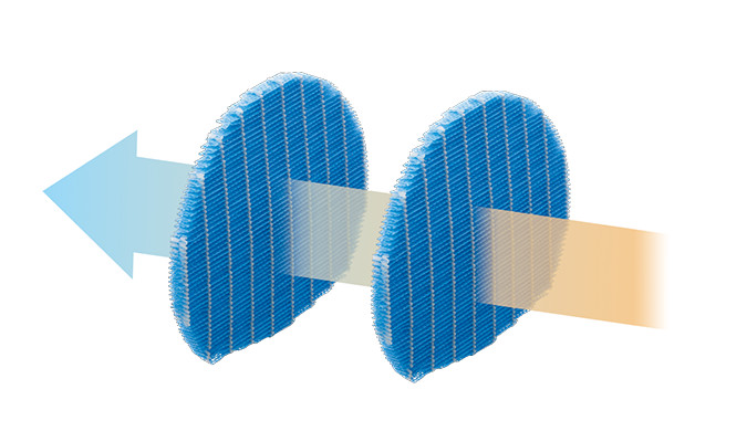 "Luồng không khí lưu thông tốc độ thổi nhanh lan tỏa khắp phòng'' là đặc điểm của công nghệ Plasmacluster trên máy lọc không khí. Nó sẽ hút bụi từ xa và hút mạnh nhờ cổng hút lớn trên toàn bộ bề mặt sau. Các ion Plasmacluster giúp hút bụi một cách hiệu quả, đồng thời loại bỏ tĩnh điện.