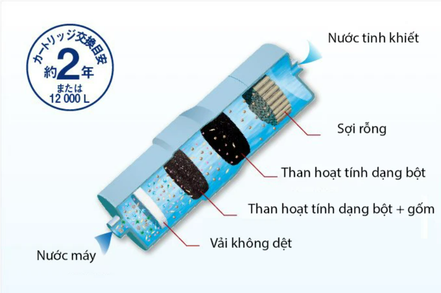 -Lõi lọc có khả năng lọc 12000L nước (có màn hình hiển thị số nước đã dùng) Made in JAPAN |