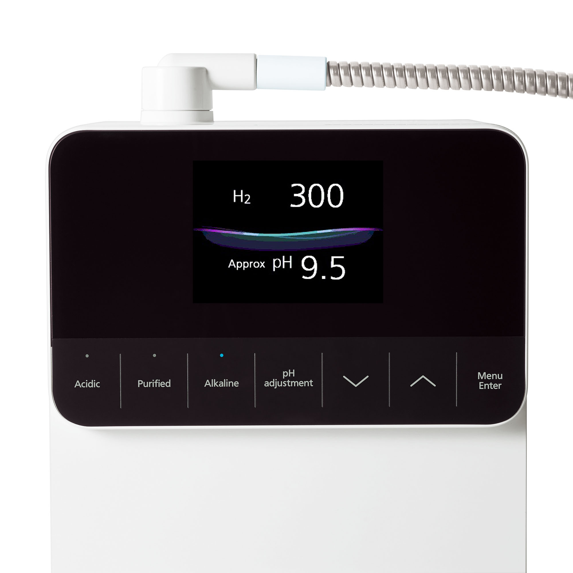 Màn hình hiển thị LCD LED đầy tính hiện đại và sang trọng, hiển thị đa sắc màu. Đầy đủ cái thông số về độ pH, chất lượng nước, thông số hydro,..v.v .