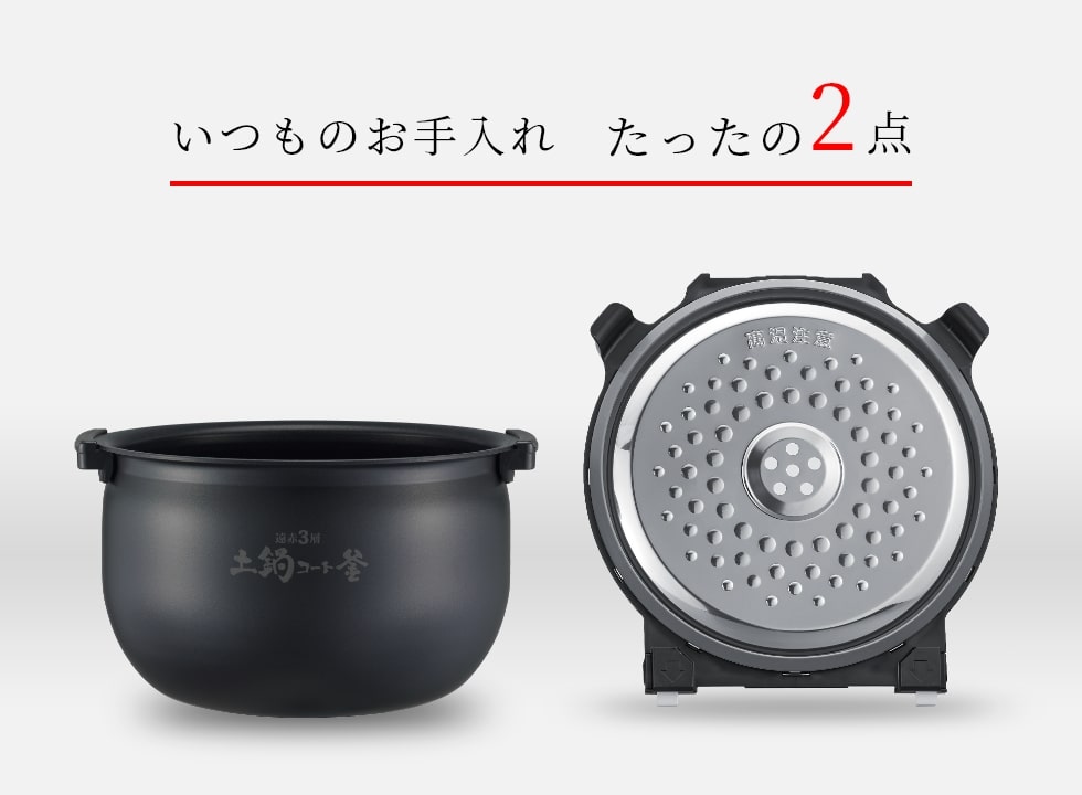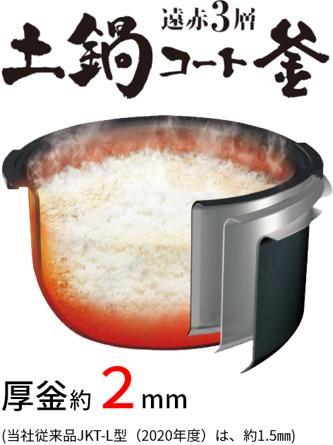 -Xoong bên trong dày 2mm được phủ lớp men chống dính, tạo ra nhiệt hiệu quả nhờ cấu trúc 3 lớp kim loại, lớp phủ hồng ngoại tăng cường hiệu ứng hồng ngoại, giúp hơi nước thấm đều vào từng hạt gạo tạo ra cơm có độ dẻo vào ngon hơn.