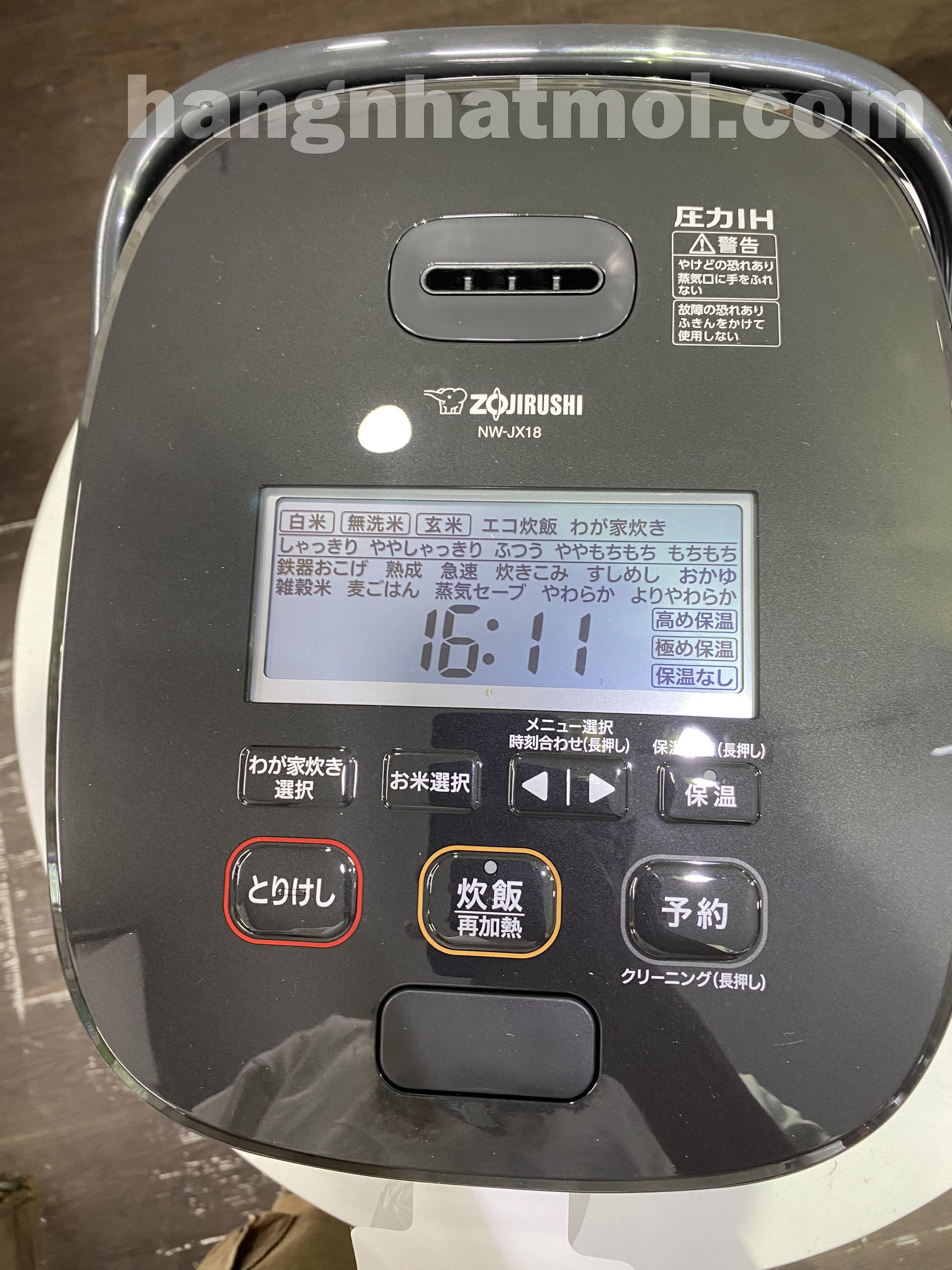 Nồi cơm điện áp suất IH Zojirushi NW-JX18 tự động điều chỉnh áp suất và nhiệt độ theo thiết lập, tạo đến 7 chế độ khác nhau bằng cách thay đổi áp suất và thời gian tùy theo thực đơn, từ cơm trắng giòn đến cơm dai và gạo lứt. Ngay cả gạo lứt vỏ cứng cũng có thể được nấu mềm bằng cách áp dụng áp suất cao 1,3 atm. (Có 5 cách để nấu cơm trắng là cơm giòn, hơi giòn, bình thường, hơi dai và dai.)