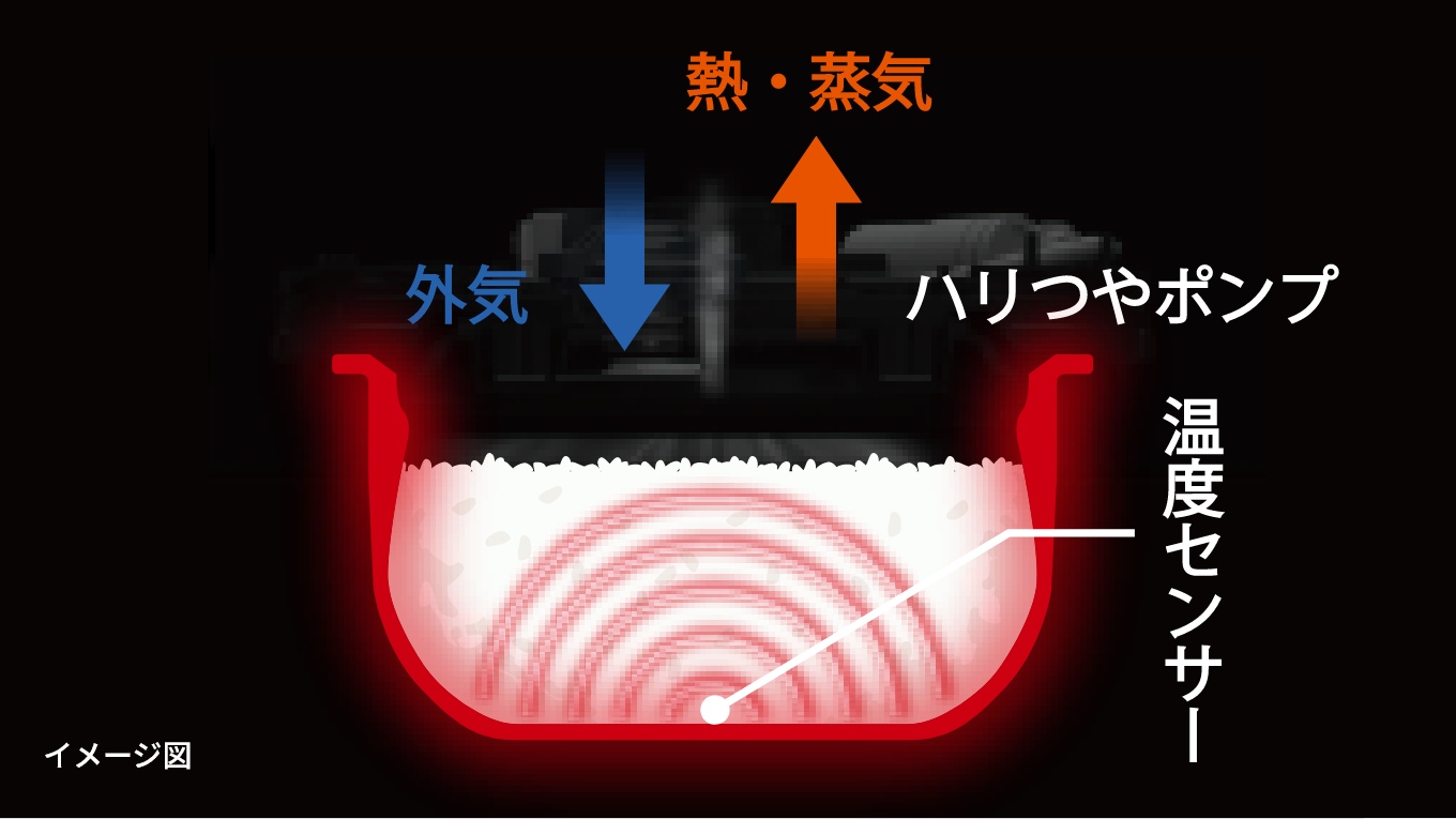 Sau khi nấu chín cơm, một cơ chế của nồi cơm điện sẽ hút không khí từ bên ngoài vào đồng thời giảm nhiệt độ bên trong một cách phù hợp.