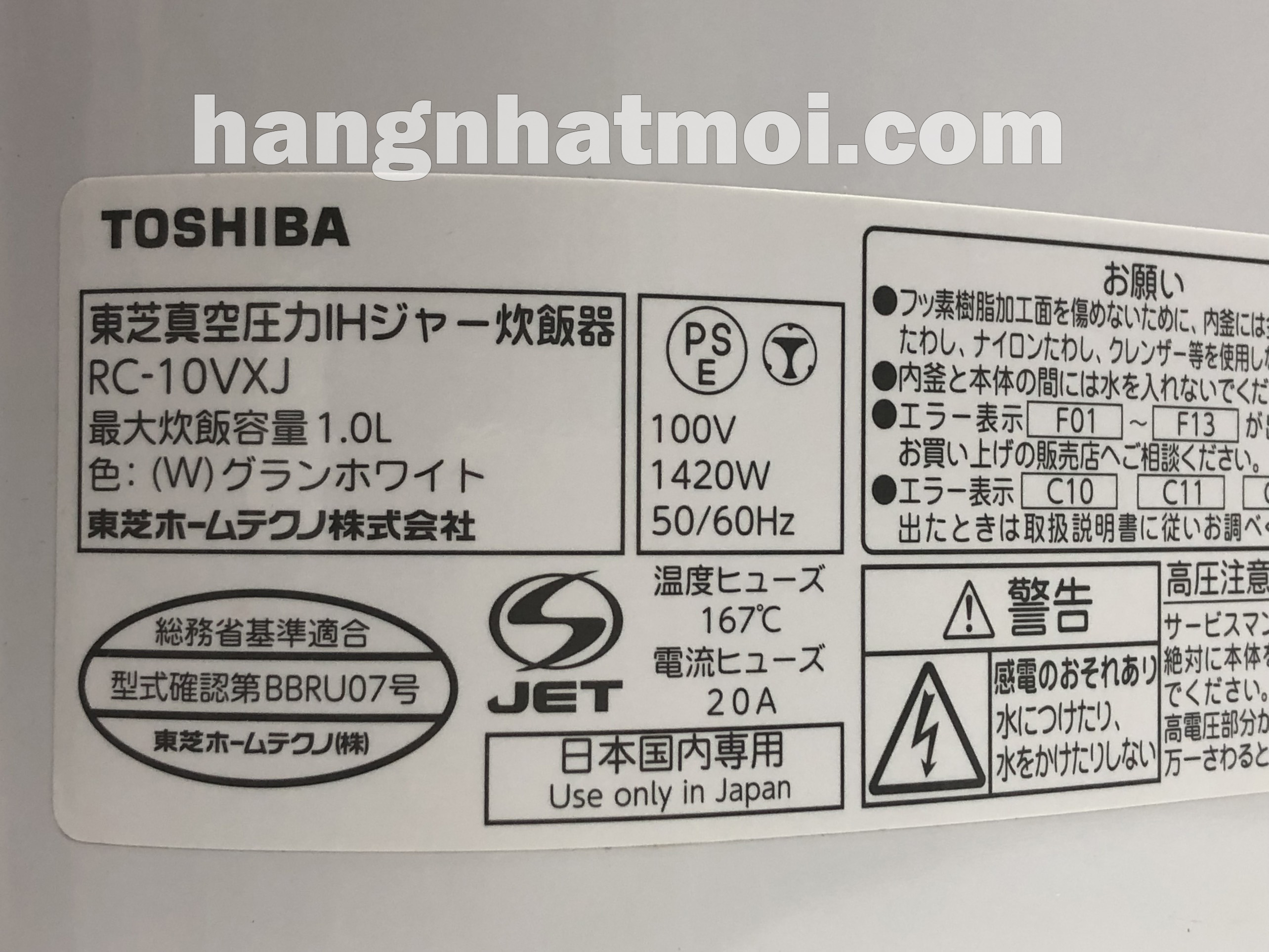 Một vài thông tin về Nồi cơm điện Cao Tần Áp Suất Hút chân không Toshiba RC-10VXJ Xoong chuông mới 95%