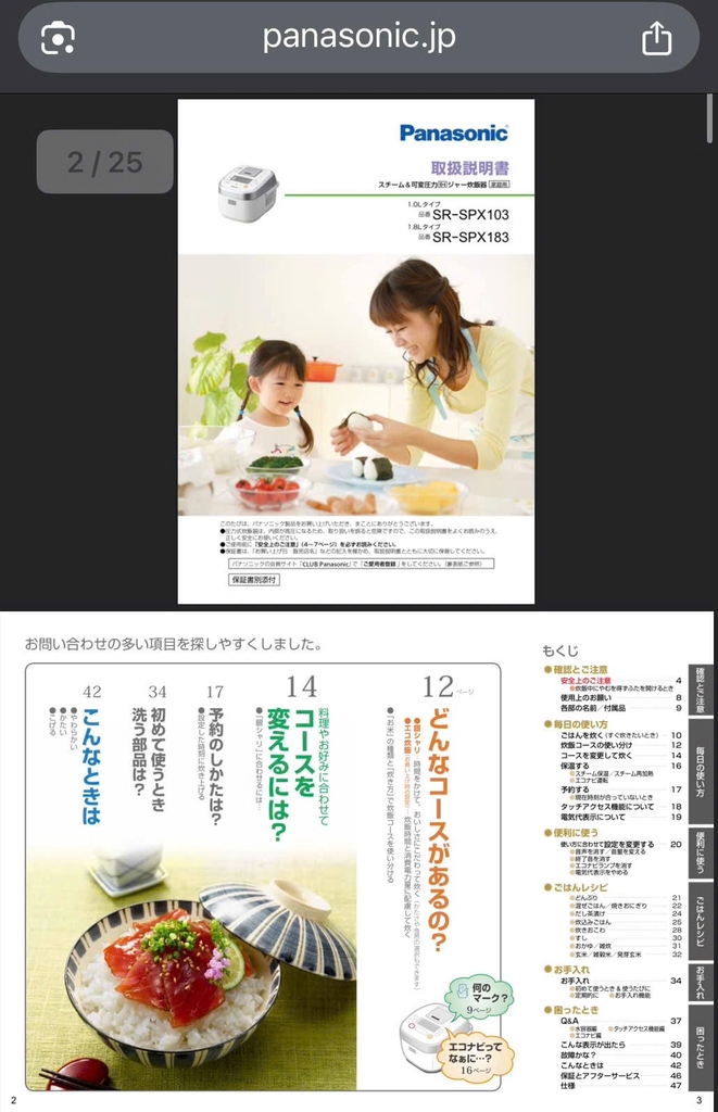 Link sách hướng dẫn sử dụng của hãng (tiếng nhật): https://panasonic.jp/manualdl/p-db/sr/sr_spx103_183.pdf