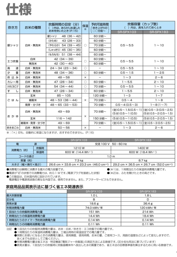 Thông tin sản phẩm: https://panasonic.jp/suihan/products/SR-SPX183.html