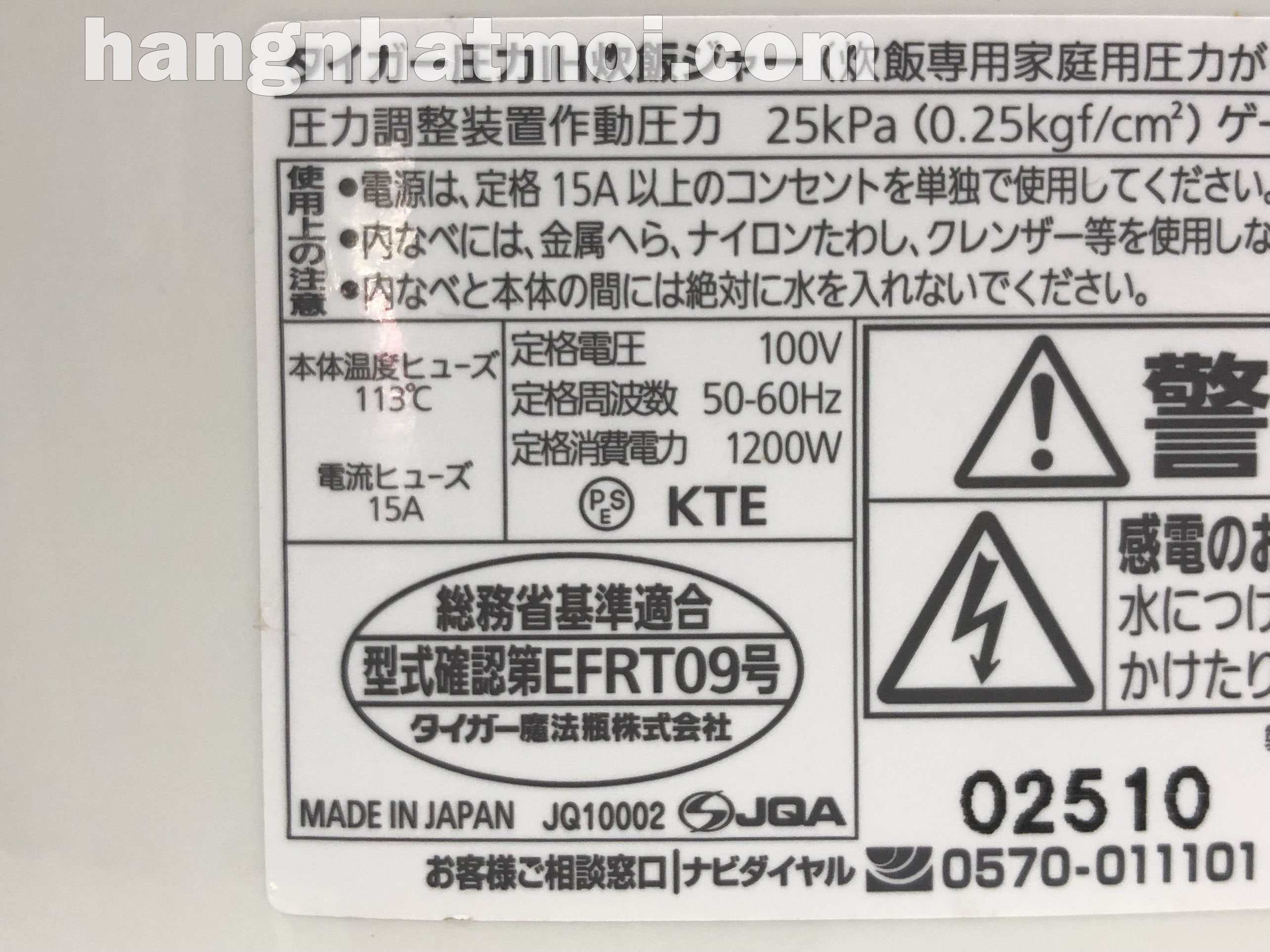 Một vài thông về Nồi cơm điện Cao tần Áp suất Tiger JPB-G100 Cao cấp Nấu cơm cháy 2nd 95%
