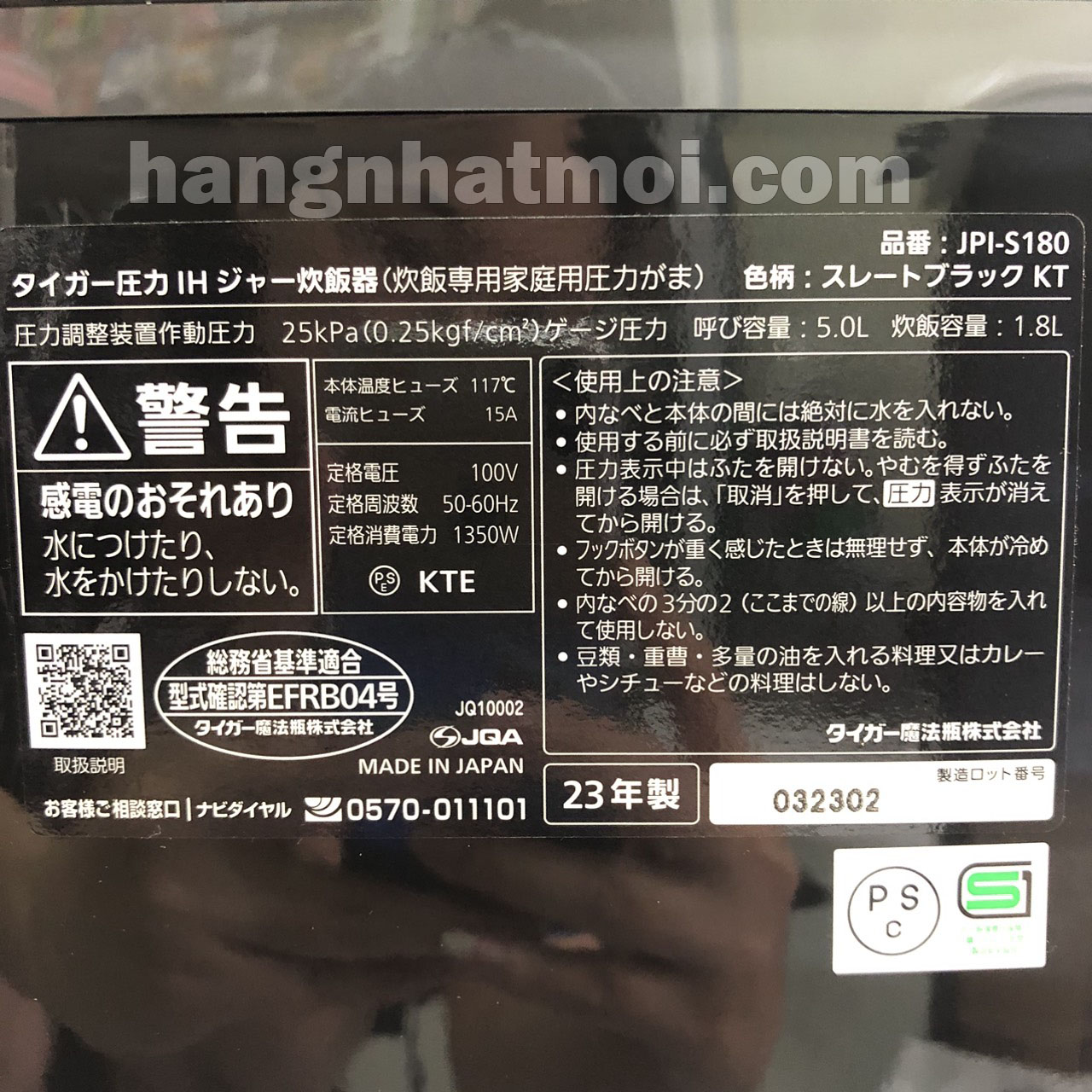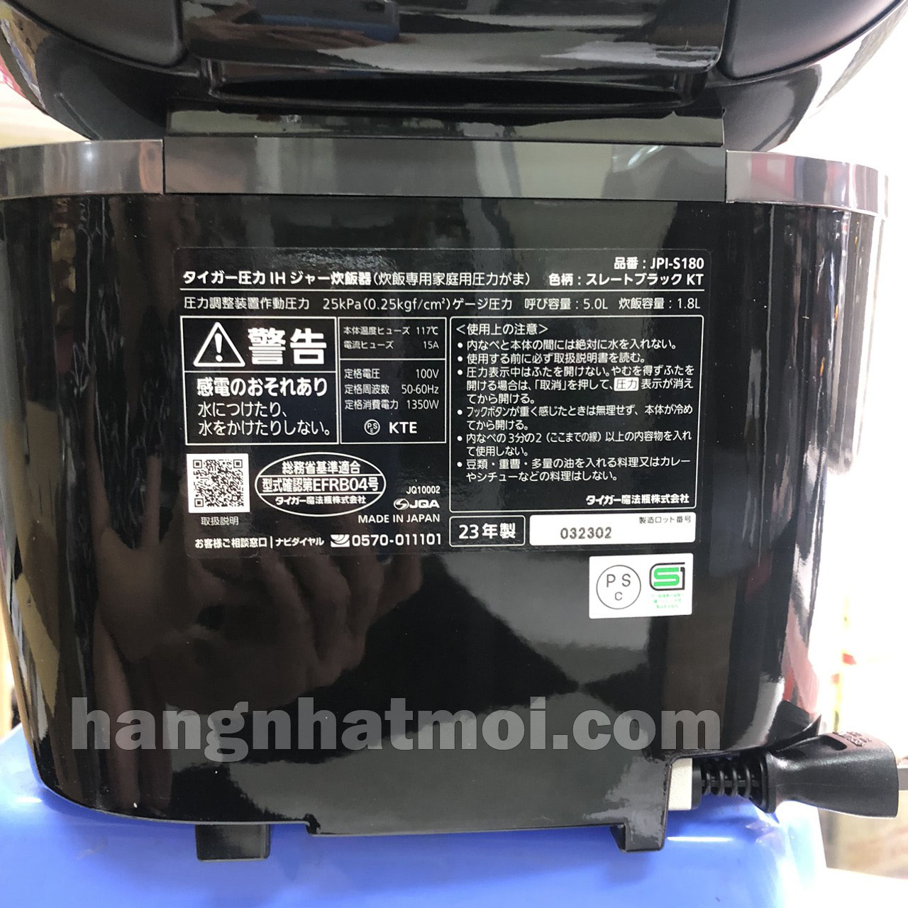 | Nồi cơm điện Cao tần Áp suất TIGER JPI-S180 chính hãng 2022 1.8L made in Japan mới 100% |
