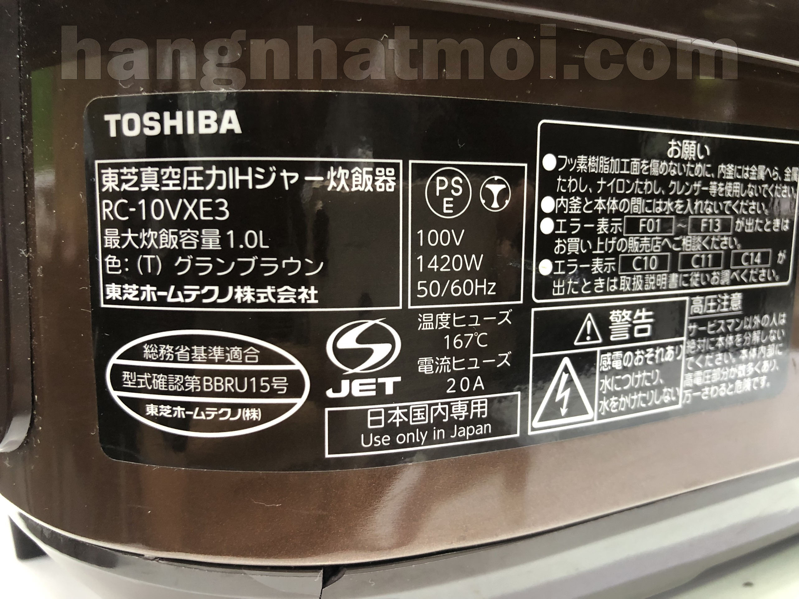 Một vài thông tin về Nồi cơm điện Cao tần IH Áp suất Hút chân không Toshiba RC-10VXE3 Xoong chuông 2nd 95%