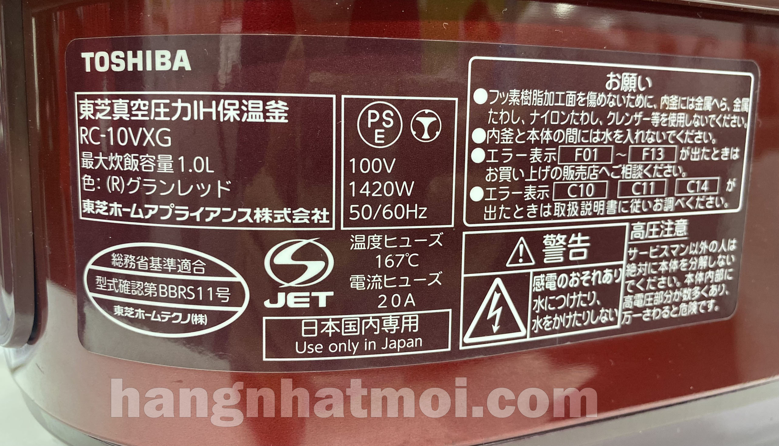 Một vài thông tin về Nồi cơm điện Cao tần IH Áp suất Hút chân không Toshiba RC-10VXG Hàng 95% Nội địa Nhật