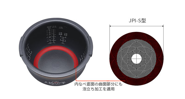 để tăng cường bọt khí. Bề mặt đáy nồi được thiết kế với khoảng 6.500 chỗ lồi lõm giúp tăng cường tạo bọt khí và tạo ra sự đối lưu thích hợp khi nấu cơm