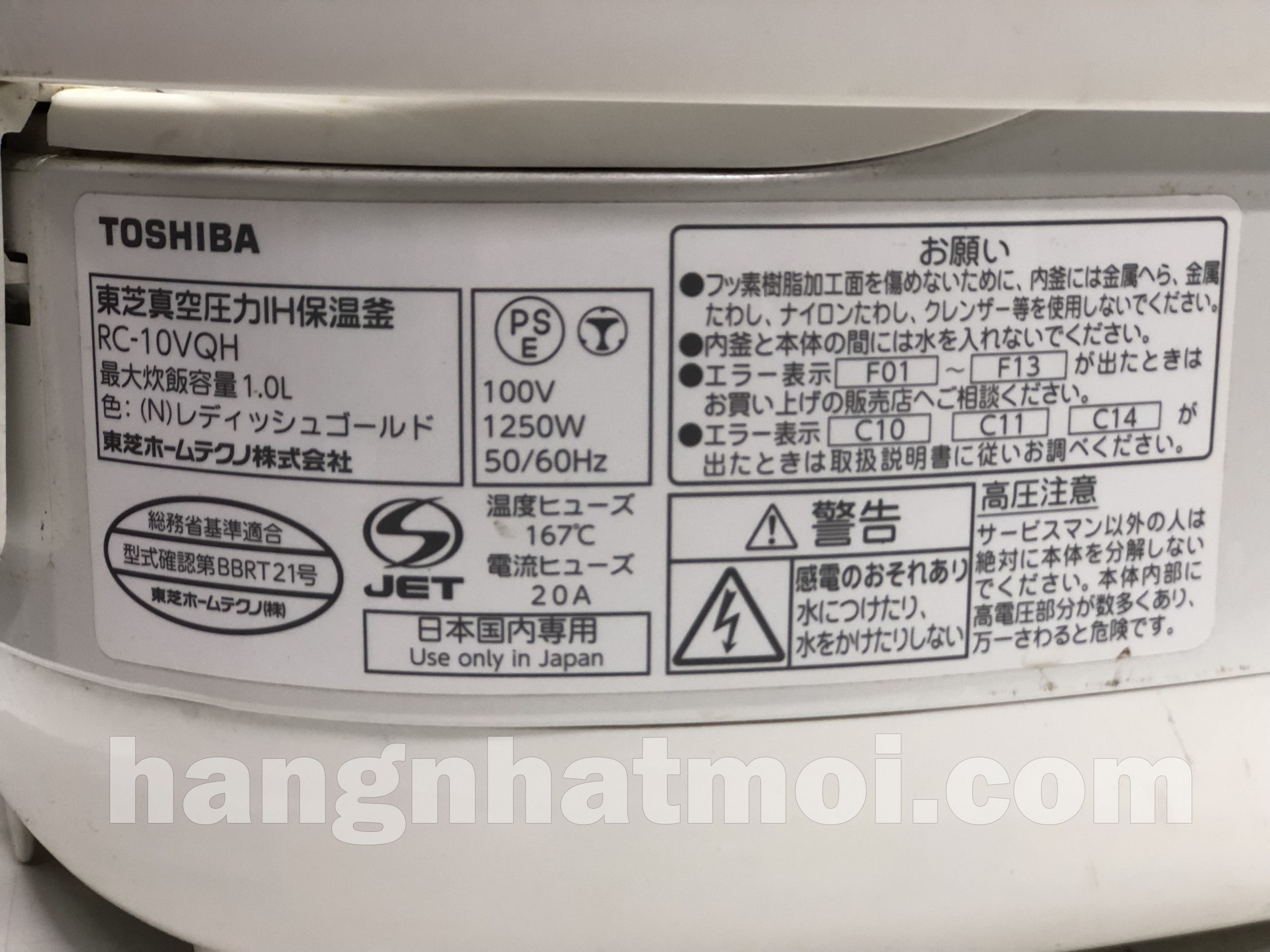 Nồi cơm điện Cao tần IH Áp suất Toshiba RC-10VQH Nội địa Nhật mới 95% |