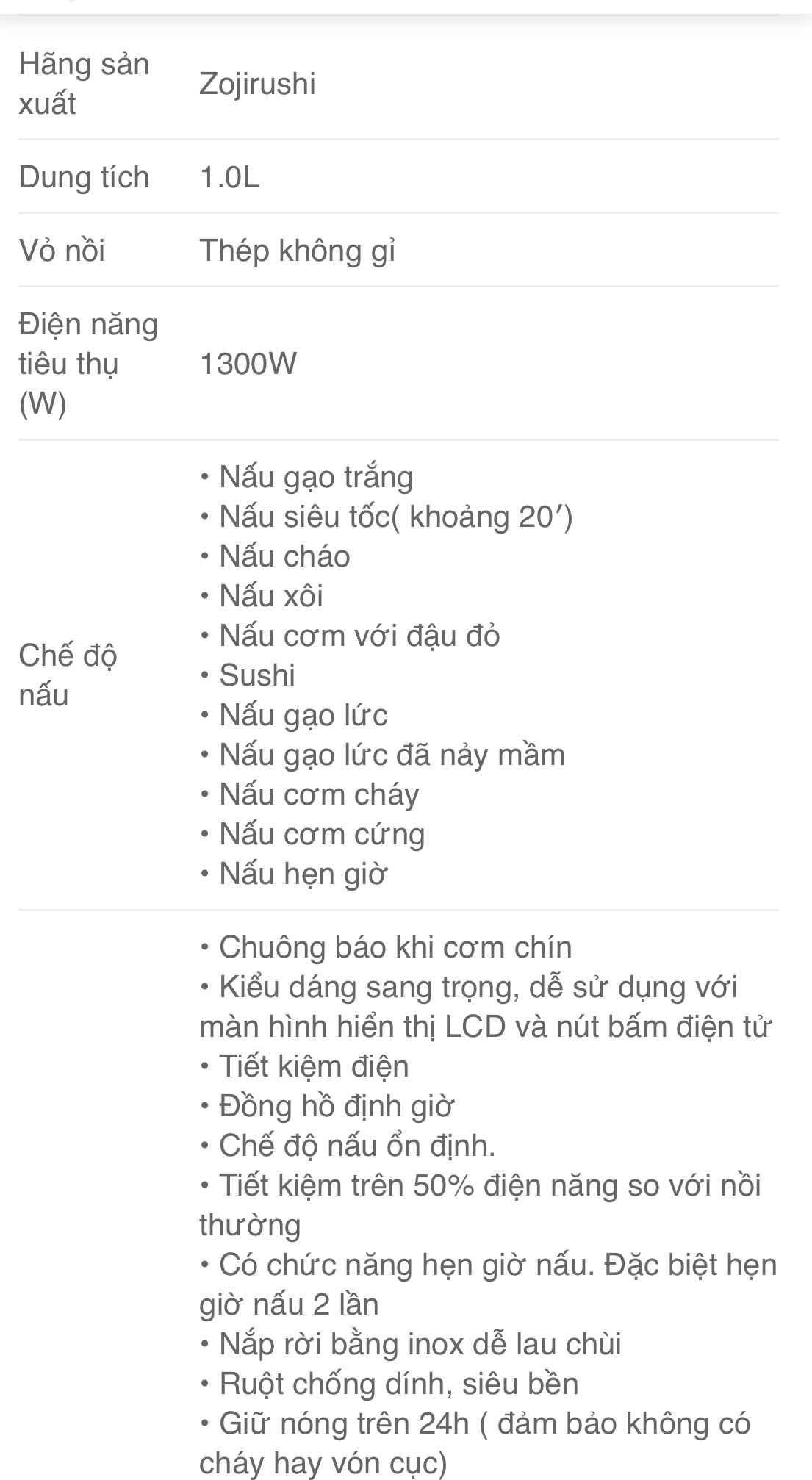 Một vài thông tin về Nồi cơm điện Cao tần IH Áp suất Zojirushi NP-BF10 2nd 95% Xoong Platinum mới.