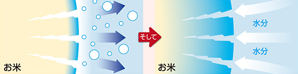 Không khí được đẩy thoát ra từ các vết nứt của hạt gạo, sau đó nhanh chóng được hút nước vào lõi từ các vết nứt đó.