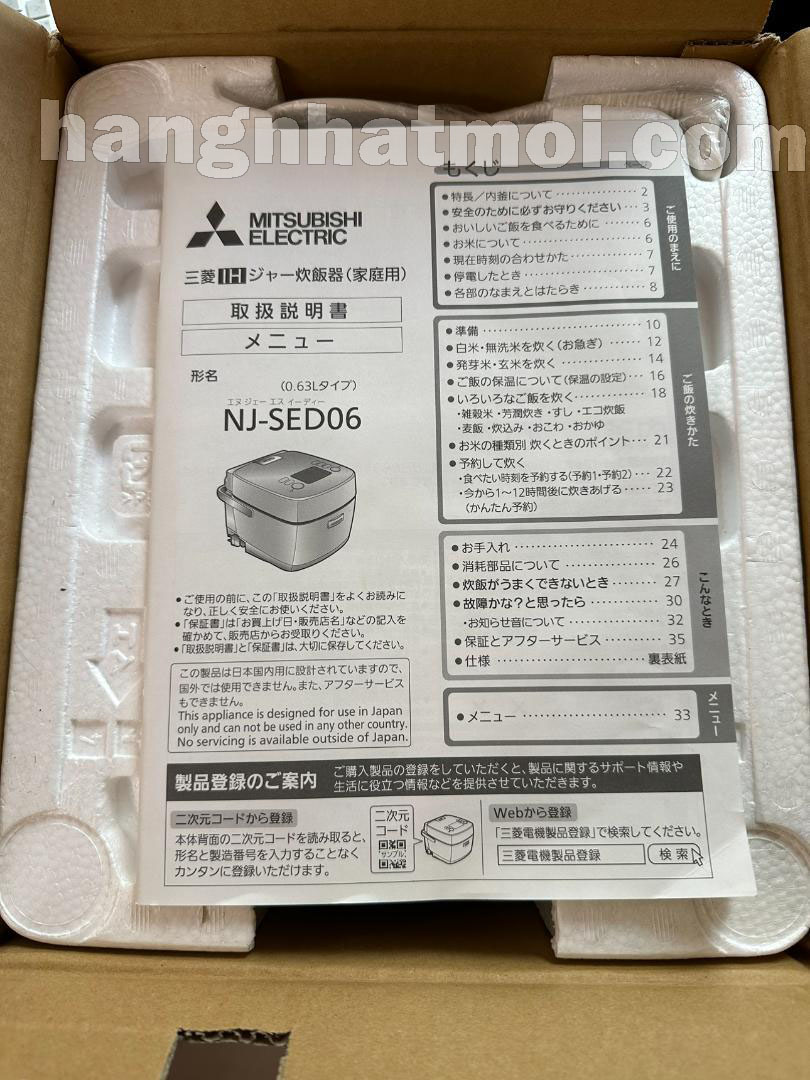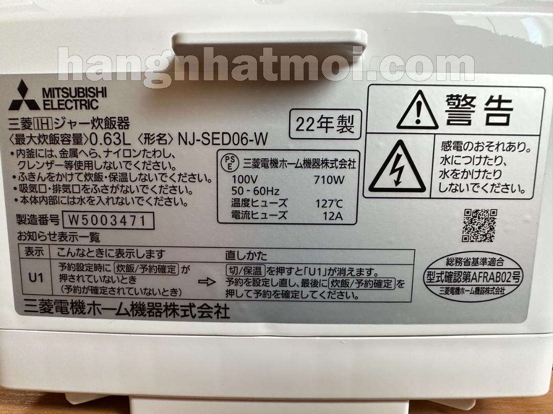 LINK SẢN PHẨM TỪ HÃNG: https://www.mitsubishielectric.co.jp/home/suihanki/product/sumitaki/nj-sed06/index.html