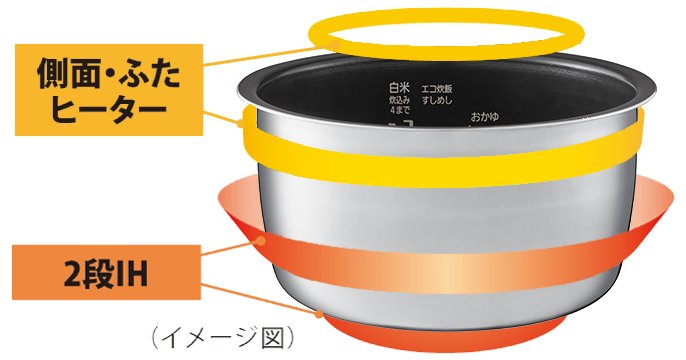 Ngoài ra, IH 2 tầng và mâm nhiệt bên nắp làm nóng nồi để hơi nước bao quanh nồi giúp nấu cơm dẻo và thơm ngon.
