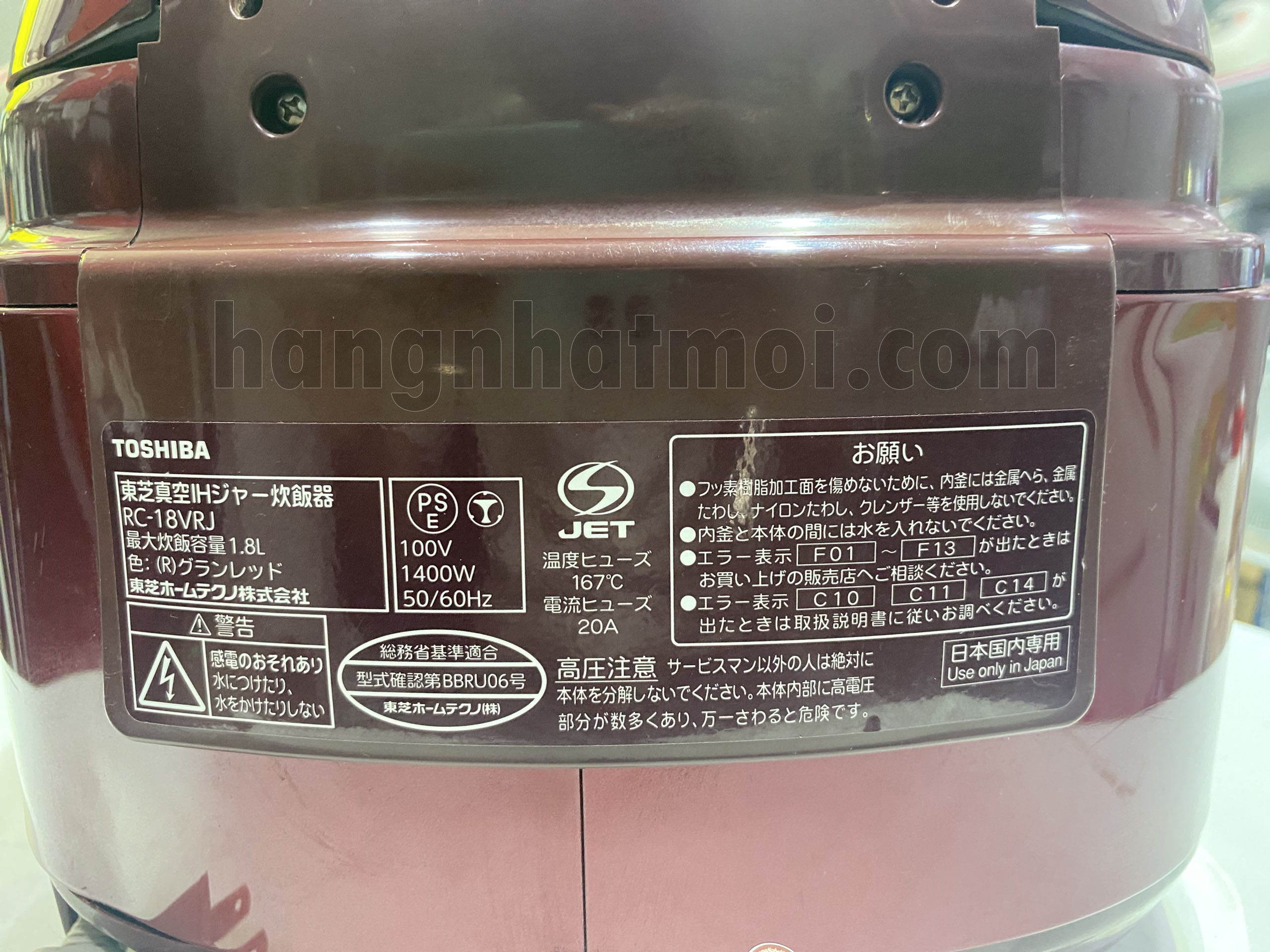 Một vài thông tin về Nồi cơm điện Cao tần IH Toshiba RC-18VRJ 2nd 90%
