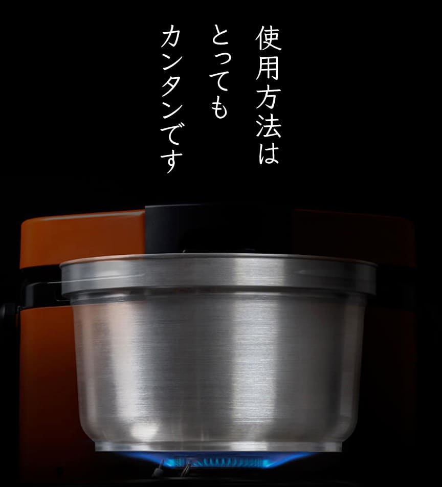 Nồi Cơm Điện Cassette HAN-go, sử dụng xi lanh khí cassette làm nhiên liệu, không có dây hoặc ống mềm, vì vậy nó có thể được sử dụng cả trong nhà và ngoài trời.