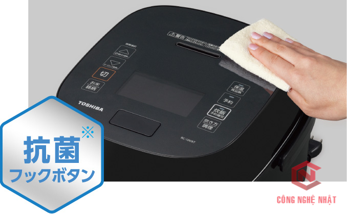 Bảng điều khiển bên ngoài phẳng nên sẽ dễ dàng vệ sinh lau chùi. Chất liệu kháng khuẩn trên bề mặt của Nồi Cơm Điện Áp Suất Cao Tần TOSHIBA RC-10VST / RC-18VST cũng sẽ làm hạn chế sự xâm nhập của các loại vi khuẩn lên đến 99%.