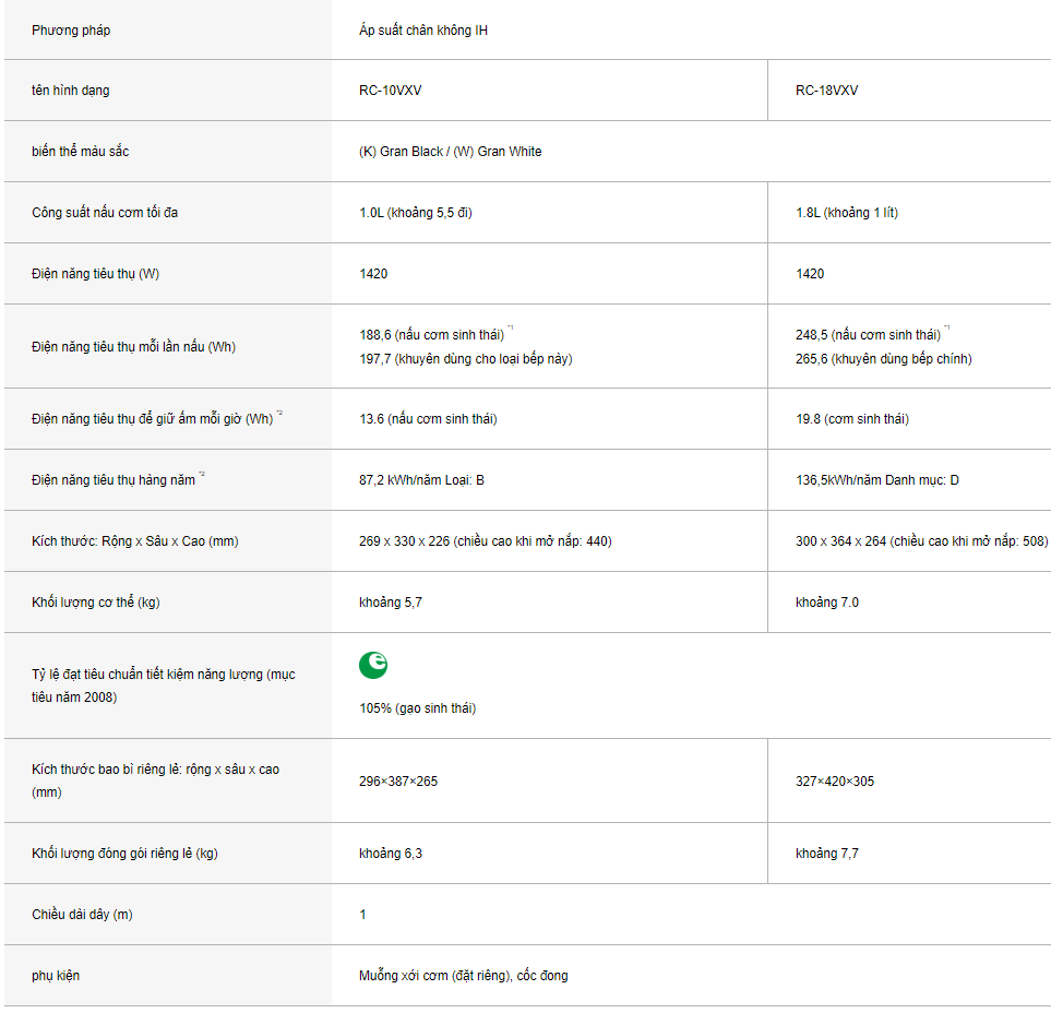 Một vài thông tin về Nồi cơm điện IH Áp suất Hút chân không Toshiba RC-18VXV Model vip xoong 7mm