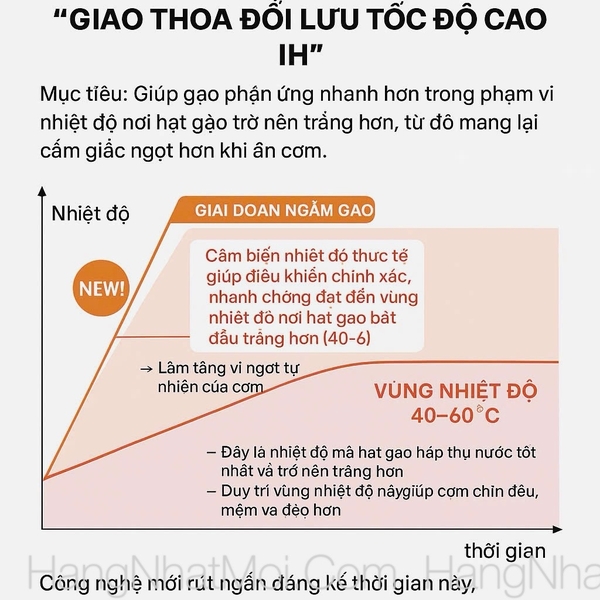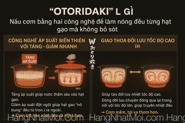 Công nghệ này mô phỏng cách nấu cơm bằng nồi gang truyền thống của Nhật, nhưng được tối ưu hoá bằng cảm biến và thuật toán hiện đại, đảm bảo cơm chín đều và thơm tự nhiên.