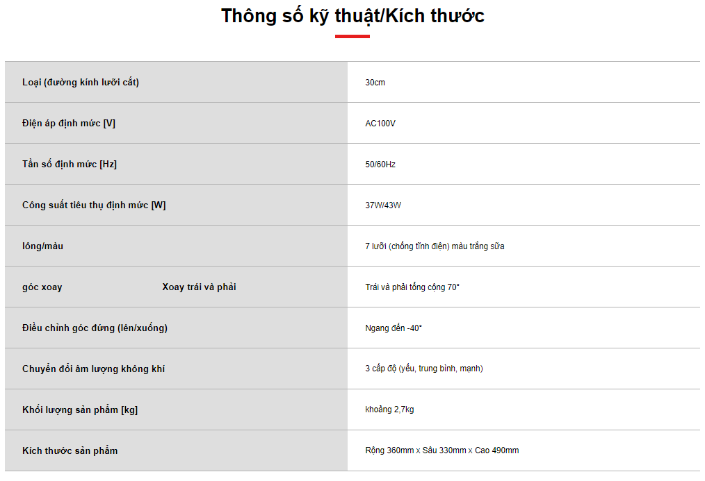 • 7 cánh quạt với làn gió nhẹ nhàng