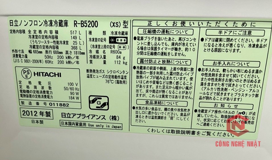 | Tên sản phẩm | Tủ lạnh Hitachi R-B5200 |